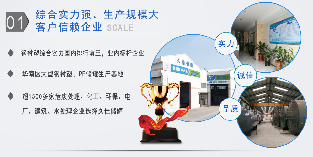 東莞市久佳防腐設備有限公司是華南地區大型規模的防腐環保儲存設備制造廠家,公司生產廠房達8000余平方米,集研發、生產、銷售于一體,有一支技術精湛、設計能力強的專業隊伍。國內領先的生產工藝和完善的檢測設備,為產品提供了優良的保證。產品廣泛應用于石化、環保、釀造、水處理、化工、醫藥、食品、煉油、發電等行業,精益求精,品質久佳!